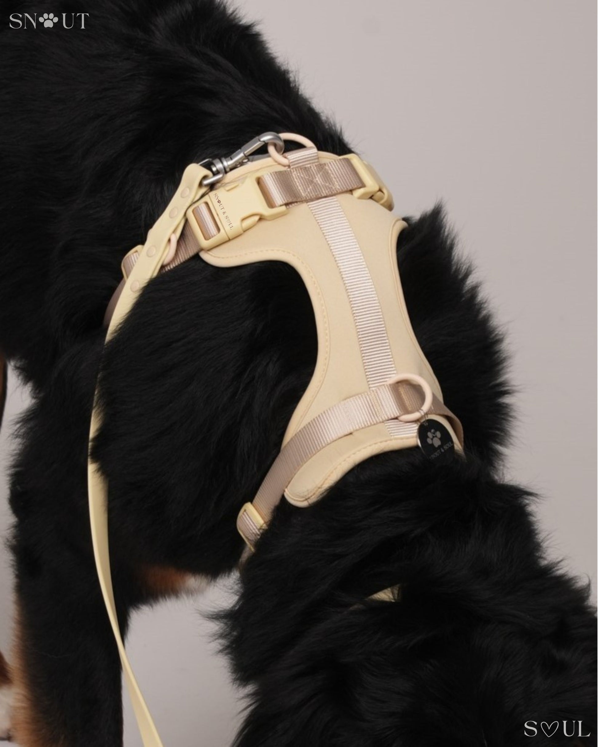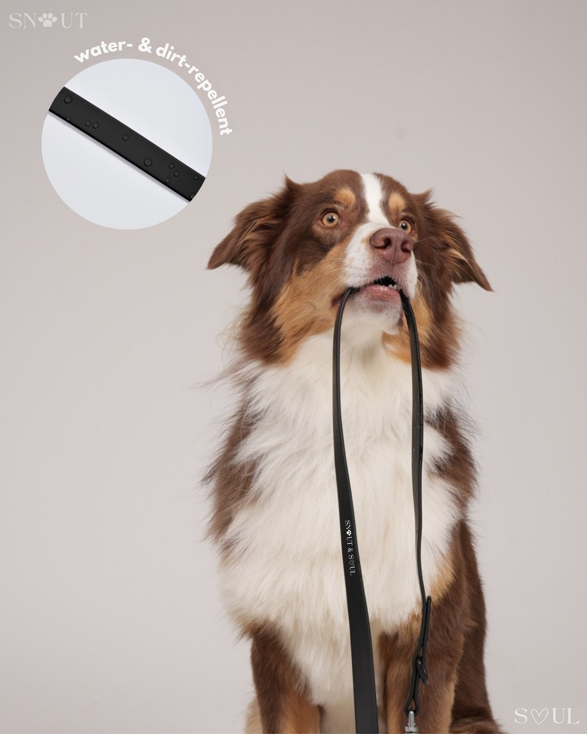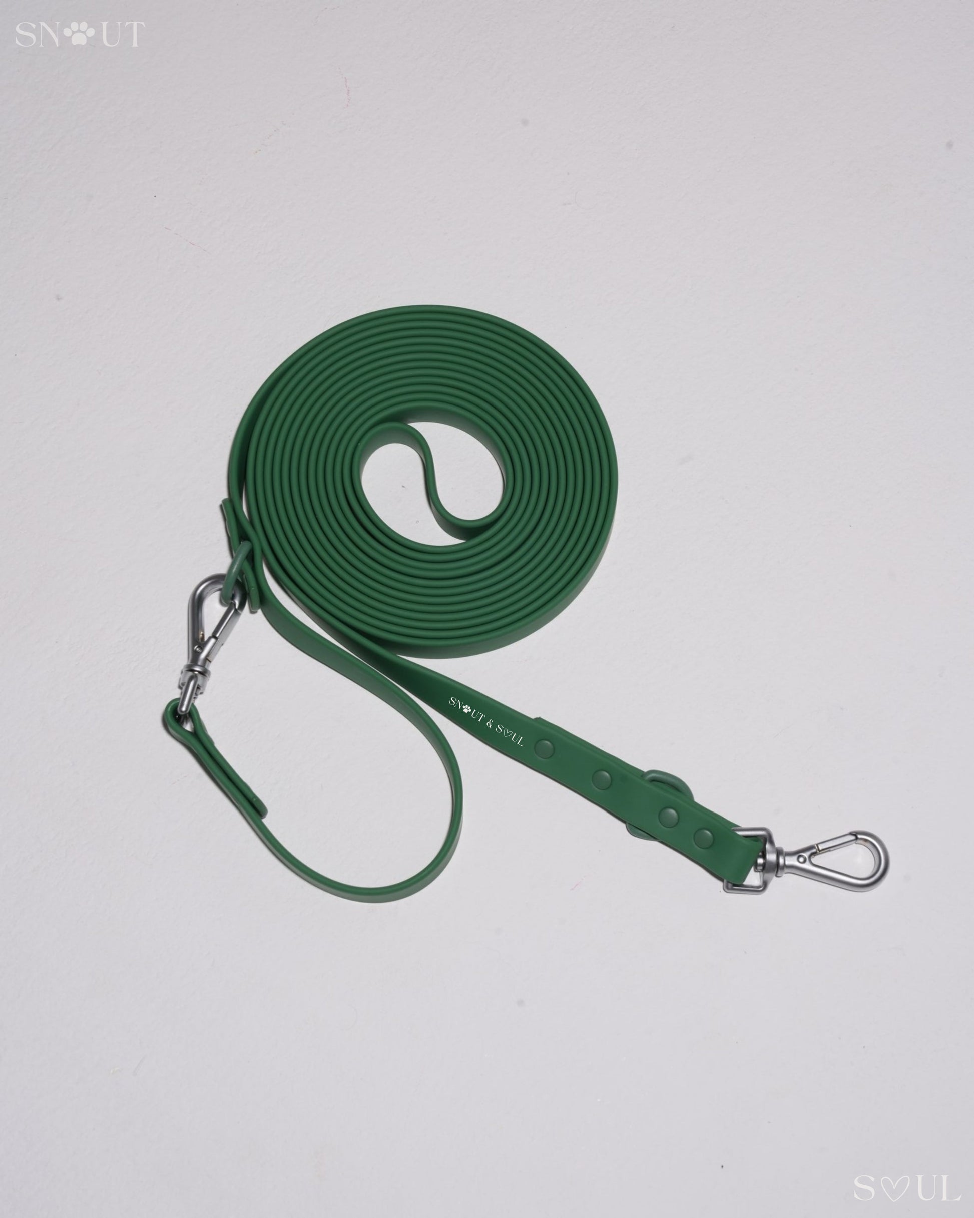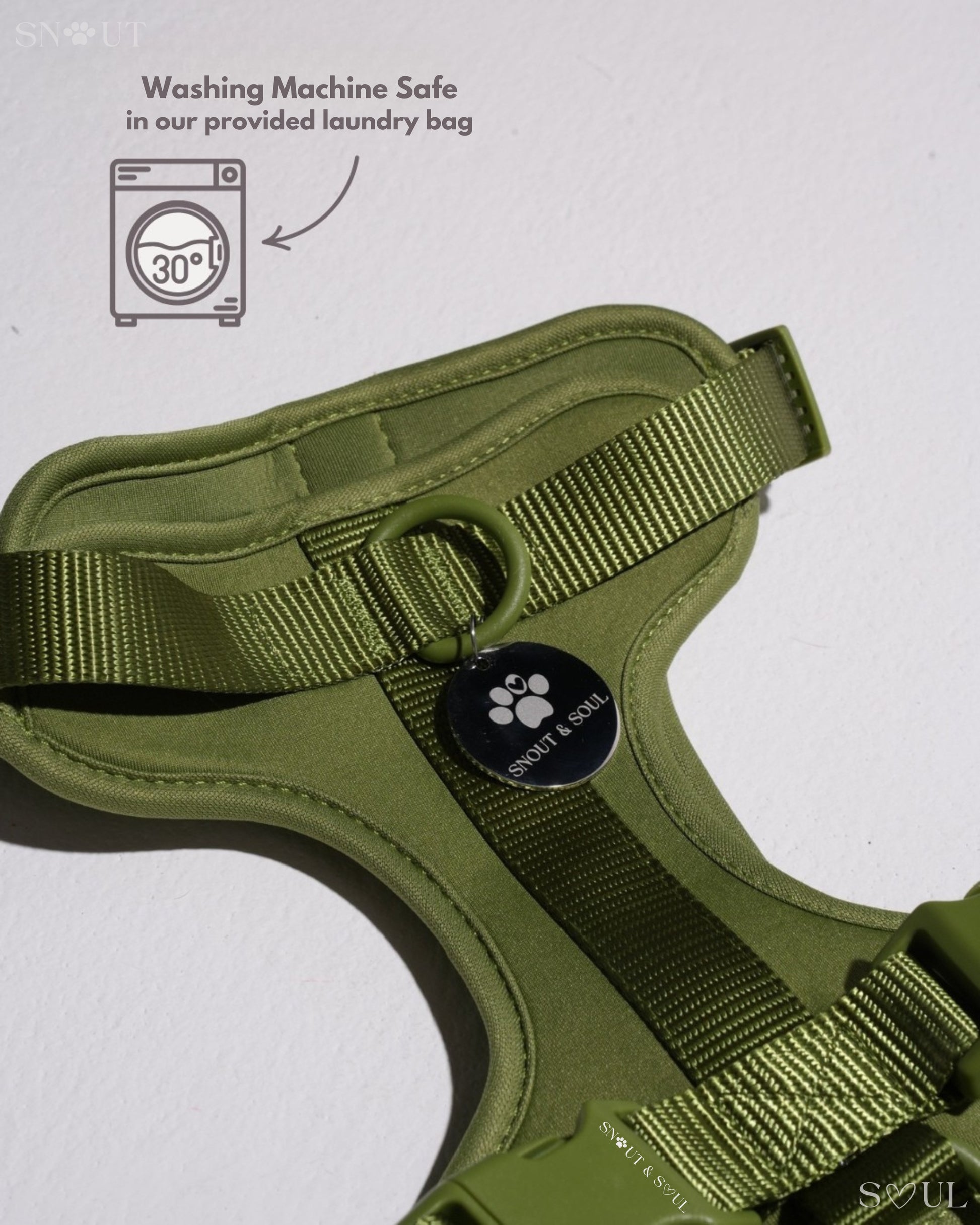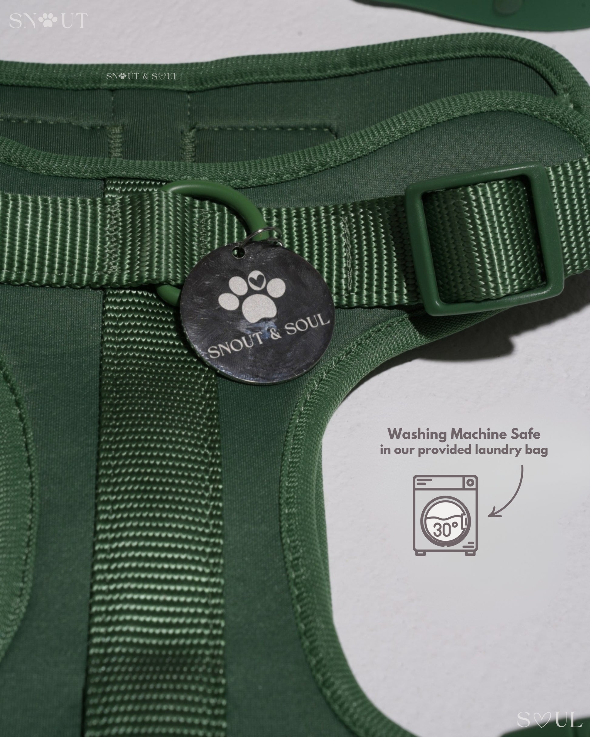 Ich bin mit dieser Firma äußerst zufrieden! Ich habe für meinen Hund ein Set bestehend aus Geschirr, Leine und Halsband von Snout & Soul gekauft. In Olivgrün!