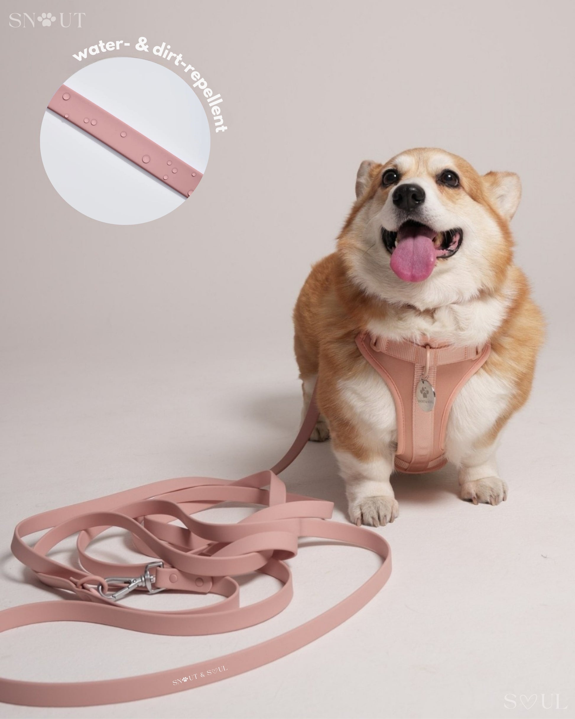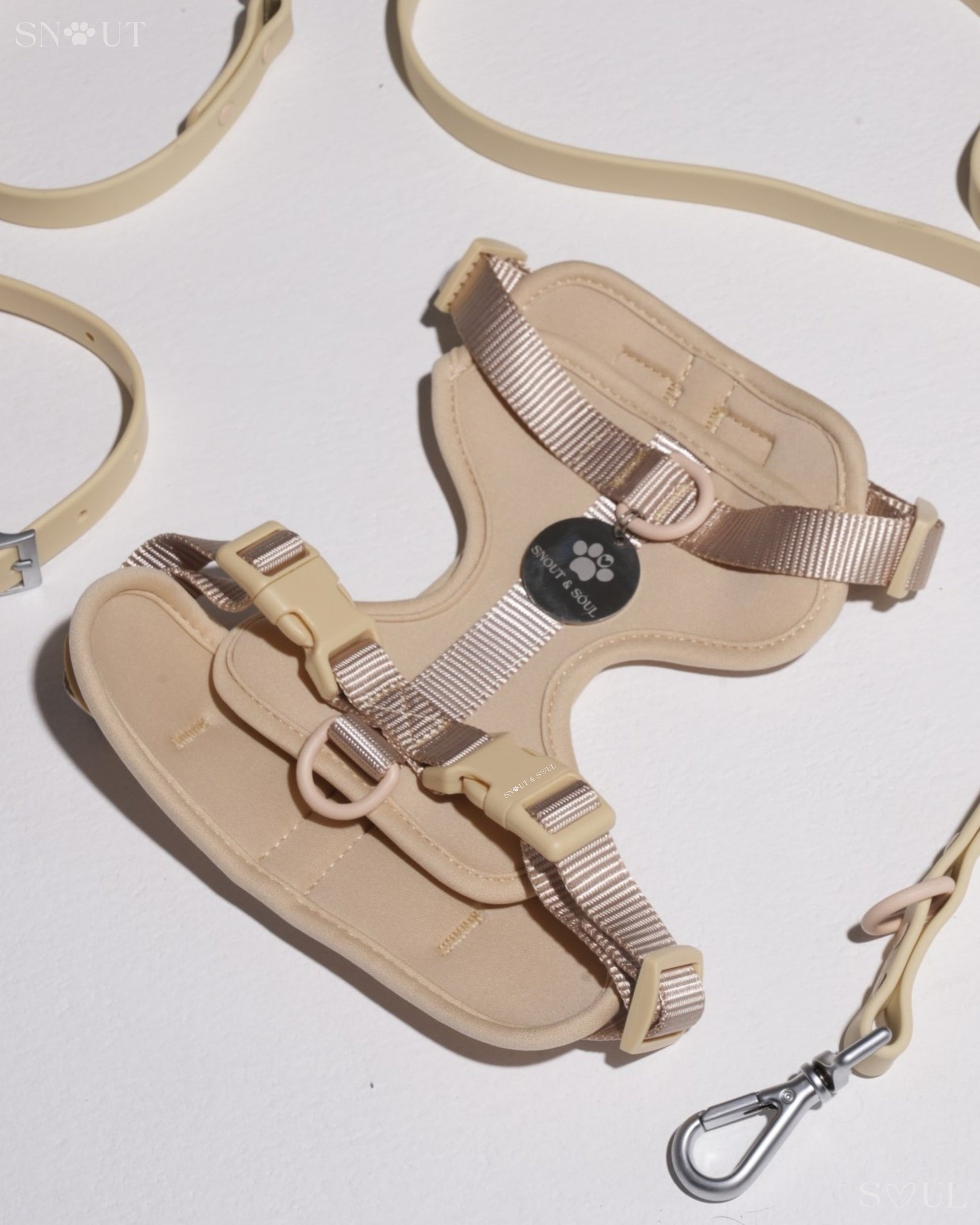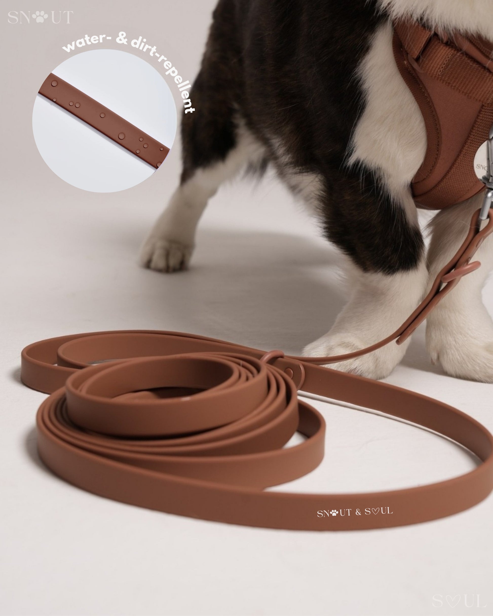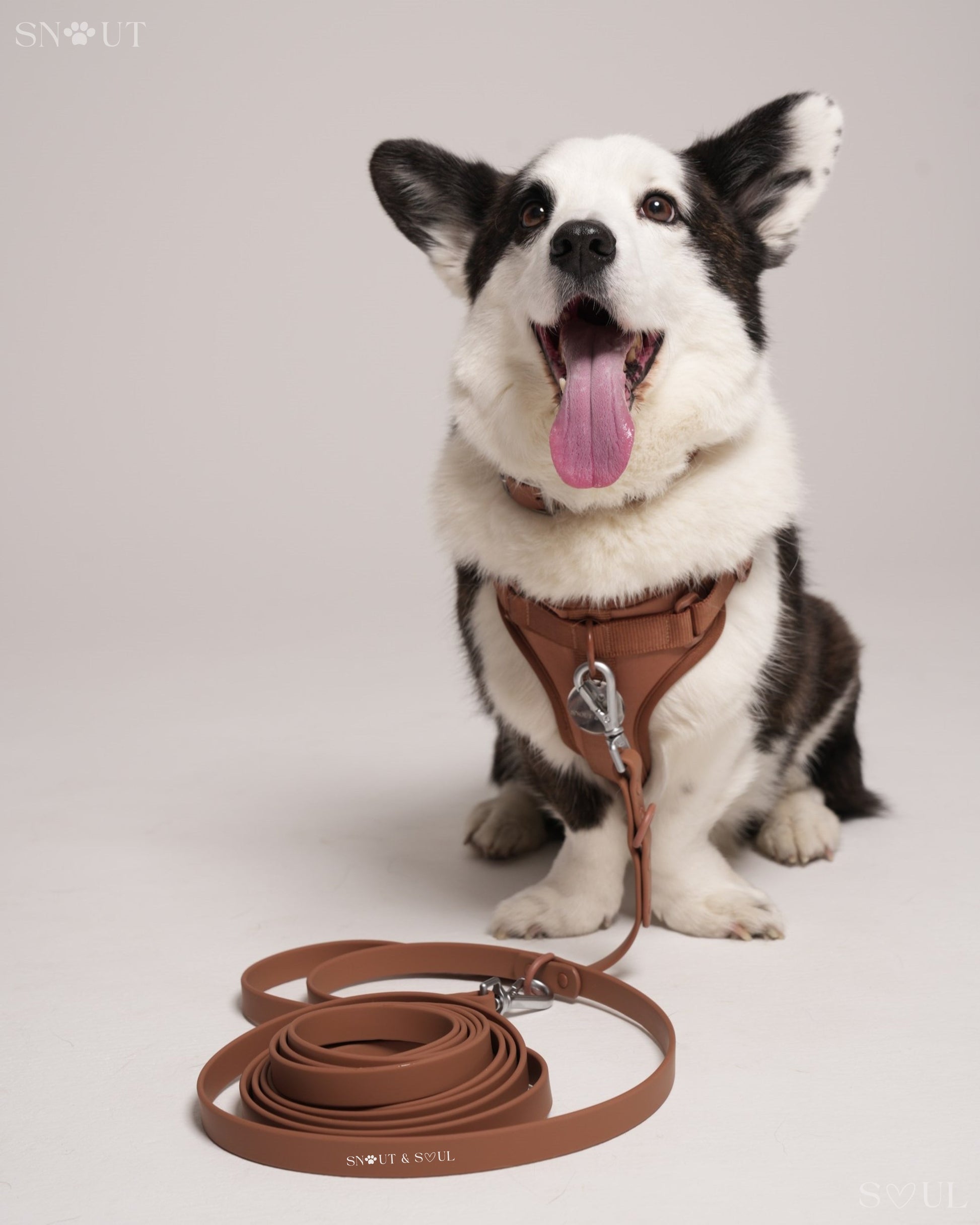 Ich bin mit dieser Firma äußerst zufrieden! Ich habe für meinen Hund ein Set bestehend aus Geschirr, Leine und Halsband von Snout & Soul gekauft. In Olivgrün!