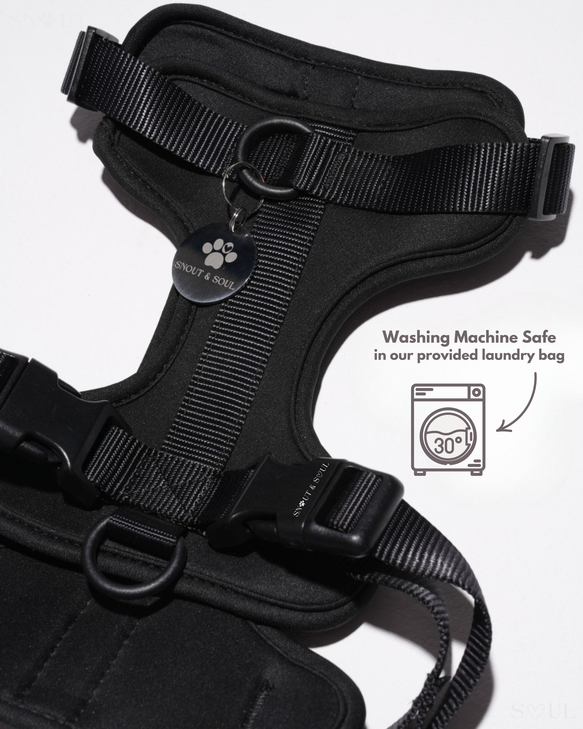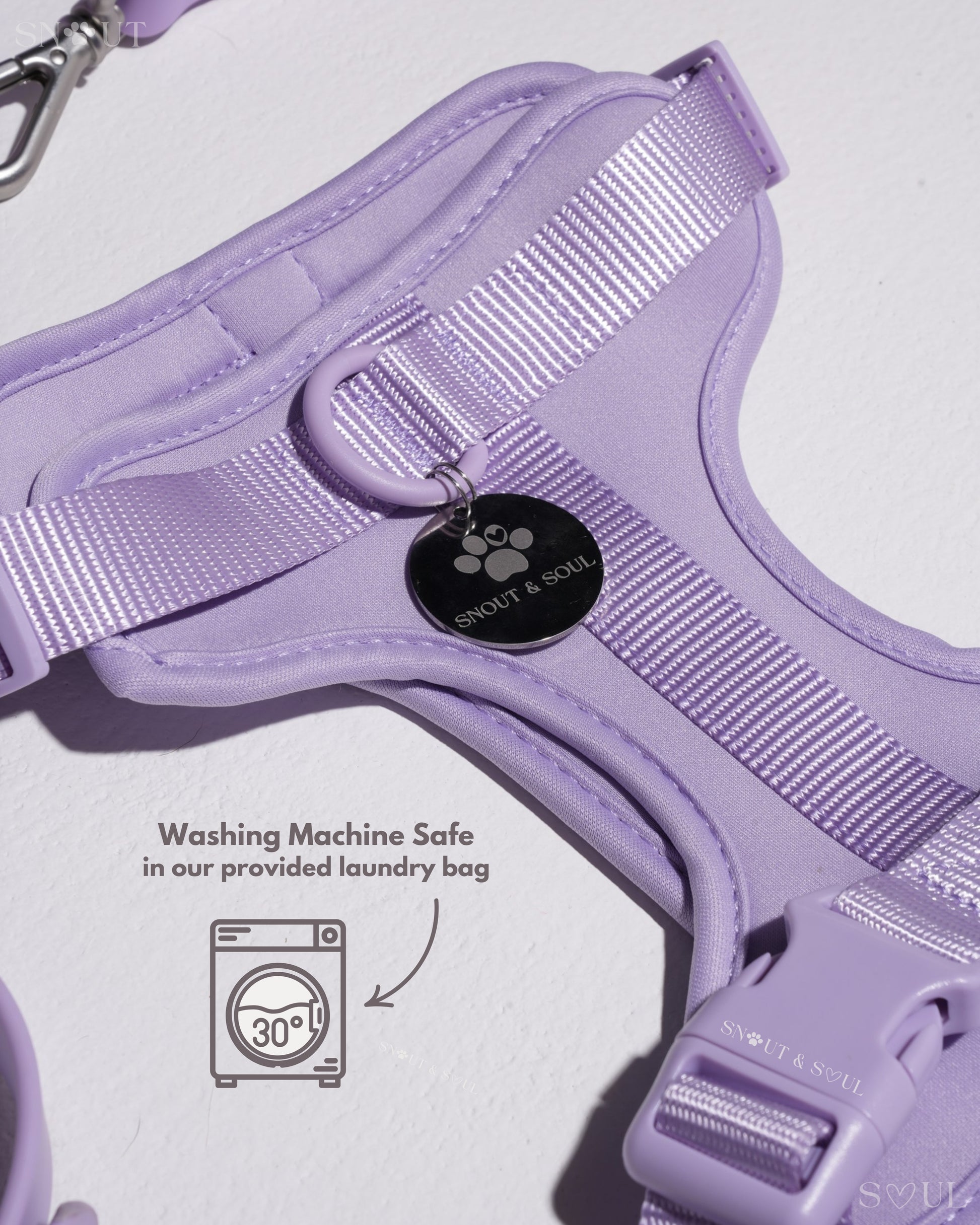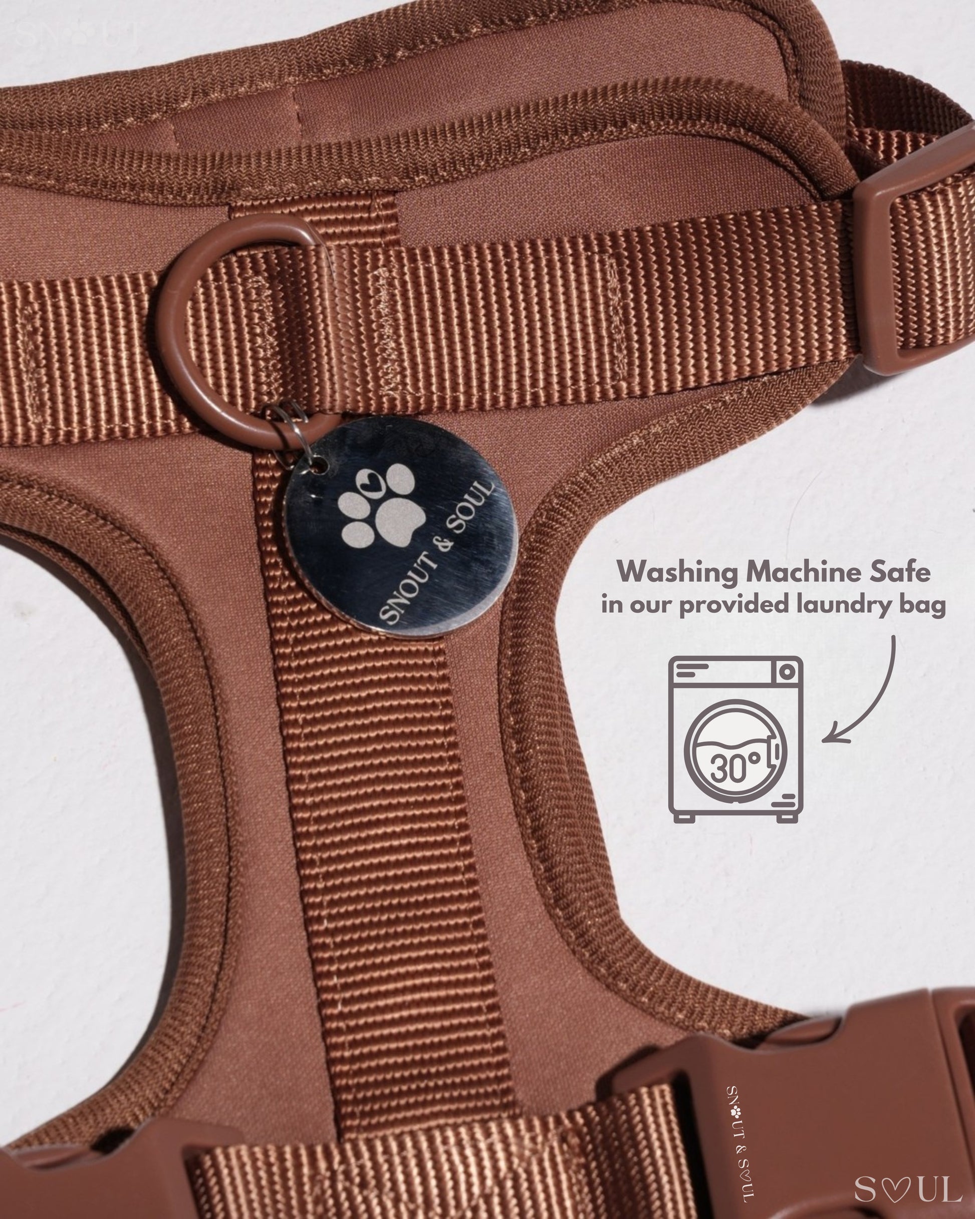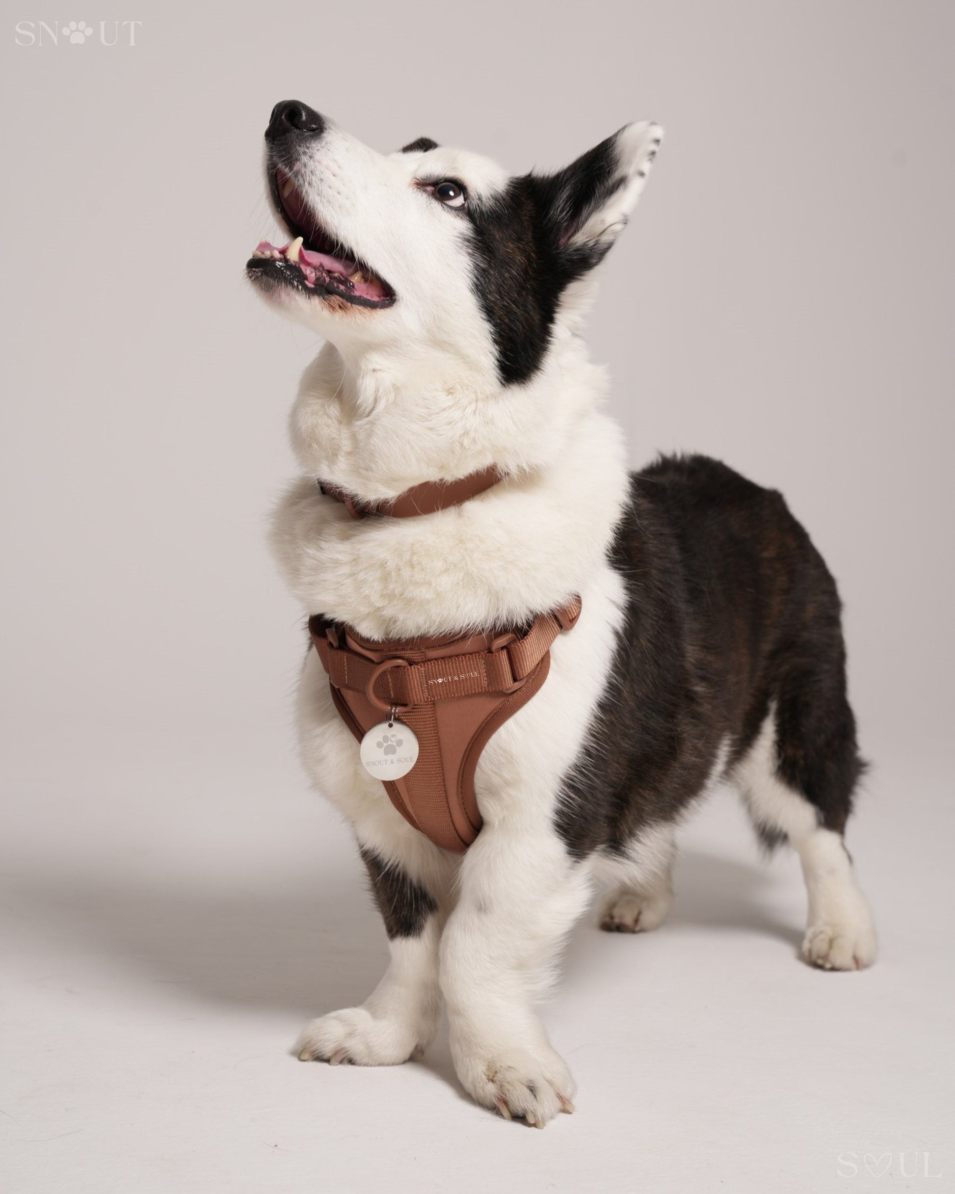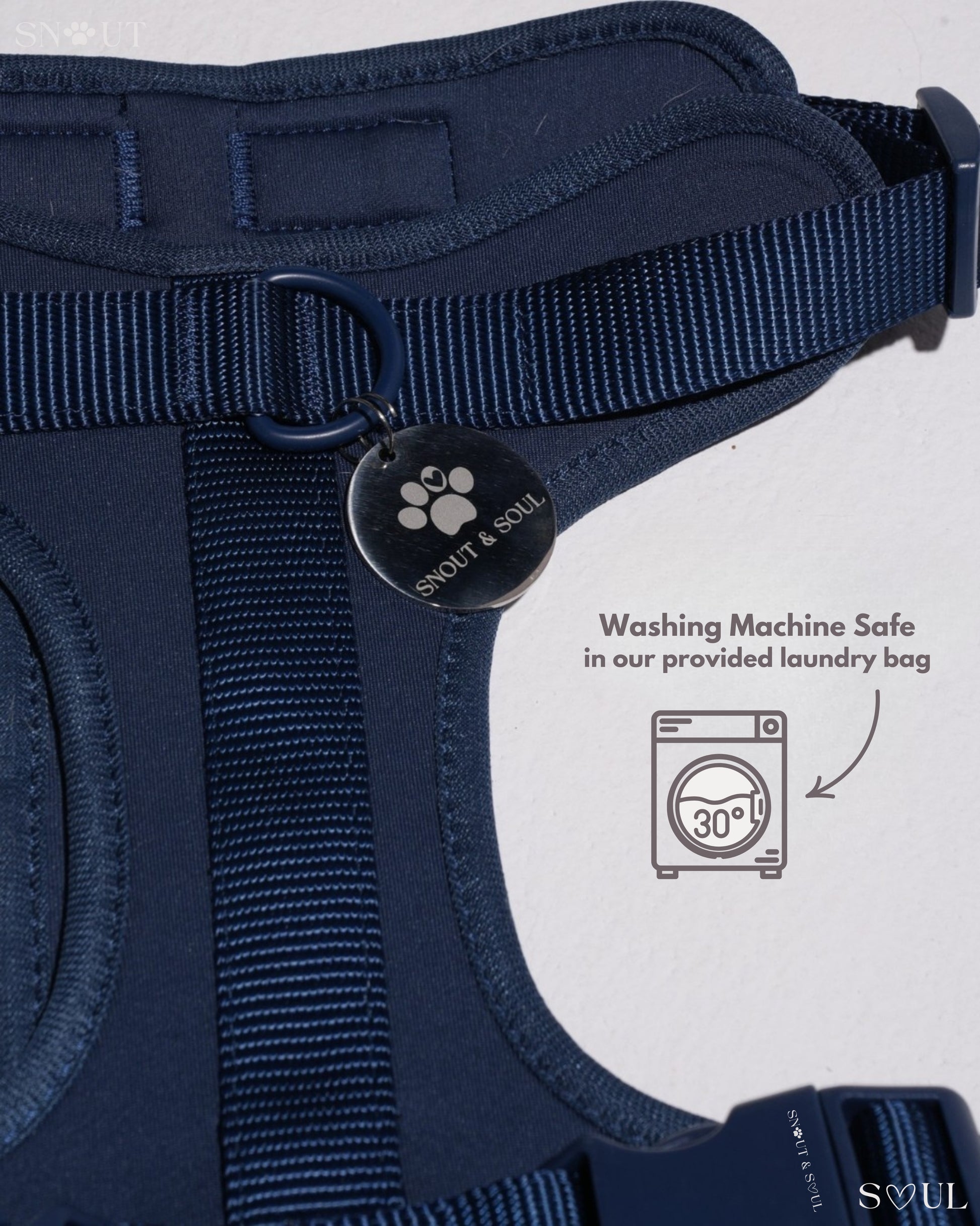 Ich bin mit dieser Firma äußerst zufrieden! Ich habe für meinen Hund ein Set bestehend aus Geschirr, Leine und Halsband von Snout & Soul gekauft. In Olivgrün!