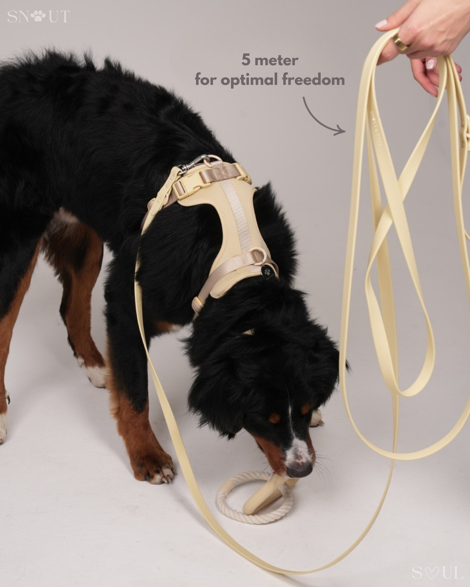 Das Explore Set von Snout & Soul geht noch einen Schritt weiter als Ihr normales Walk Set. Es enthält ein Geschirr und eine Schleppleine und macht Ihre Abenteuer noch größer! Die 5 Meter Schleppleine bietet Ihrem Hund das ultimative Freilauf- Erlebnis – ohne Kompromisse bei der Sicherheit. Das Geschirr ist extra bequem und dazu noch super stylisch!