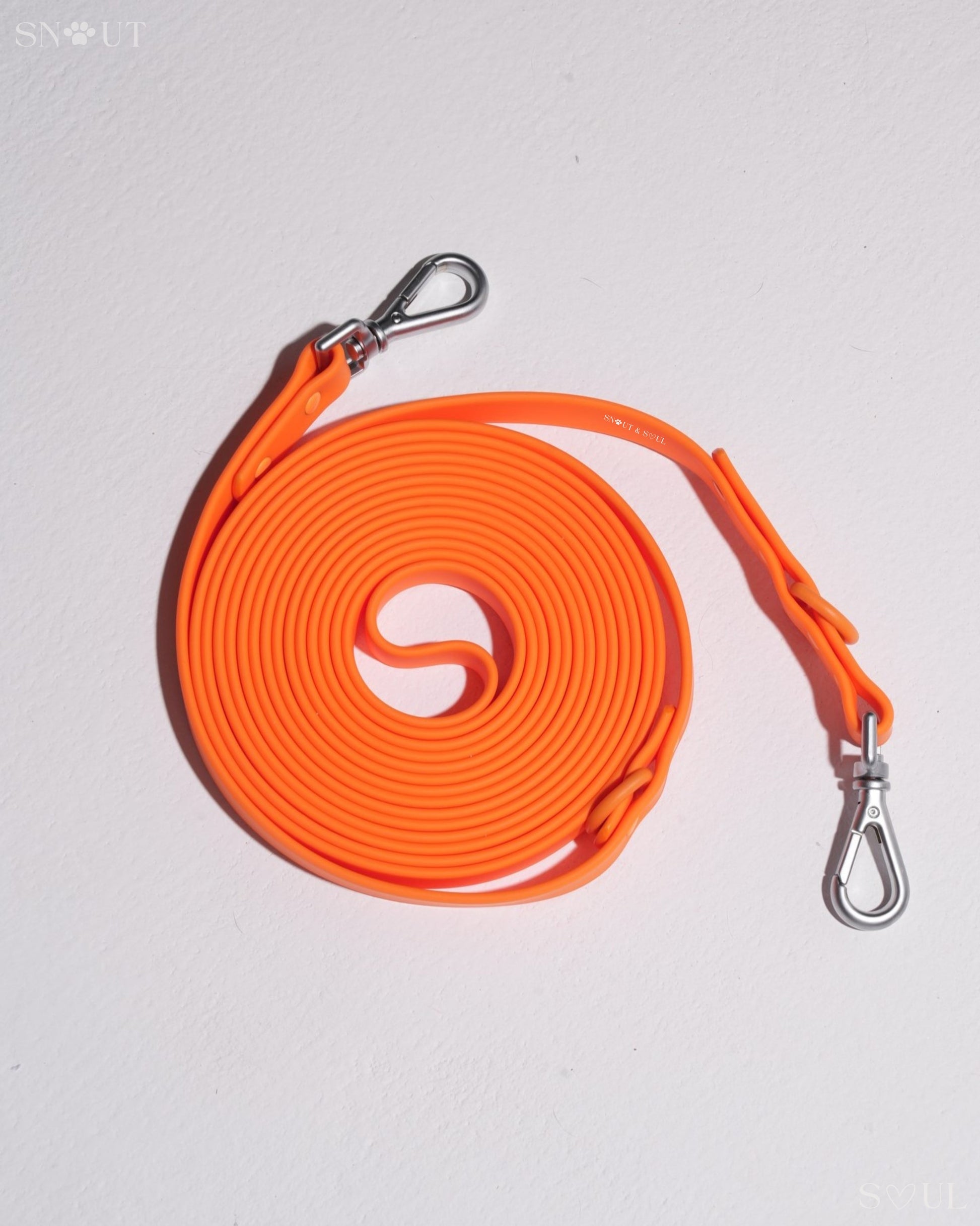 Diese praktische lange Leine ist multifunktional. Verwenden Sie sie lang oder falten Sie sie doppelt und befestigen Sie sie auf 2,5 Meter. Geben Sie Ihrem Hund so viel Bewegungsfreiheit, wie Sie möchten.