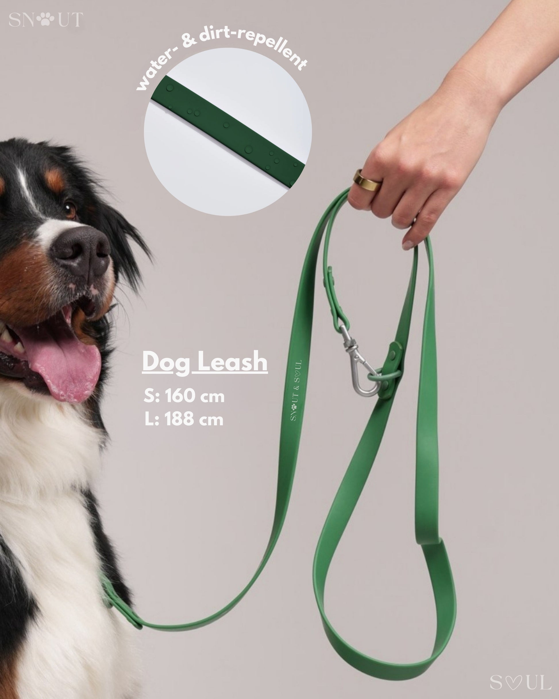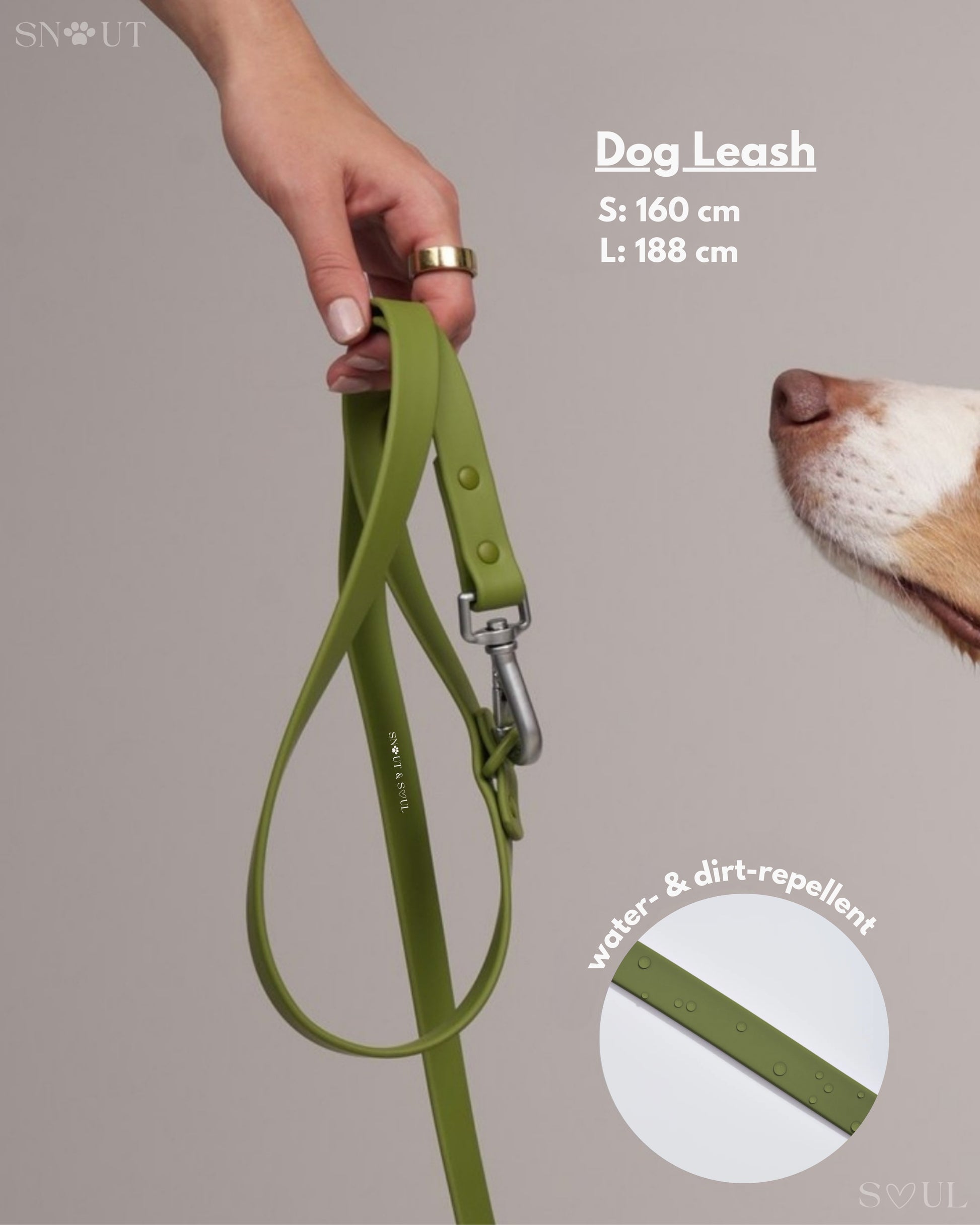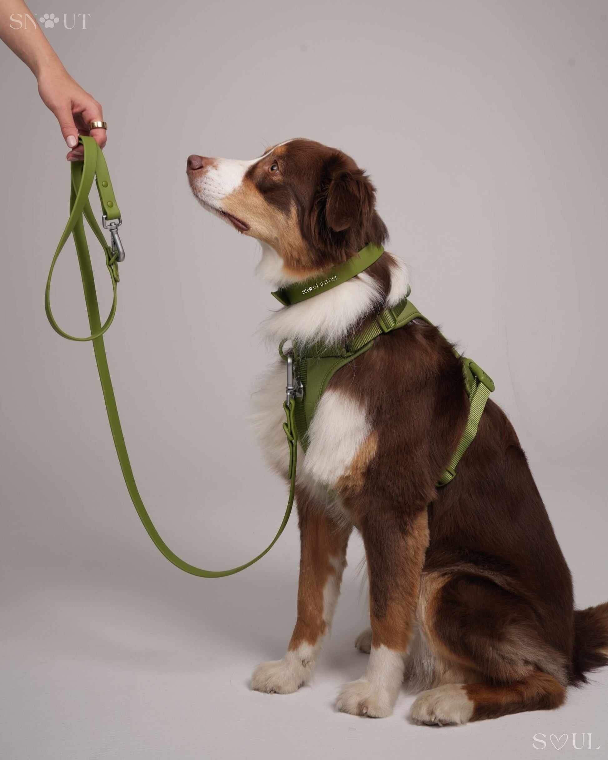 Ich bin mit dieser Firma äußerst zufrieden! Ich habe für meinen Hund ein Set bestehend aus Geschirr, Leine und Halsband von Snout & Soul gekauft. In Olivgrün!
