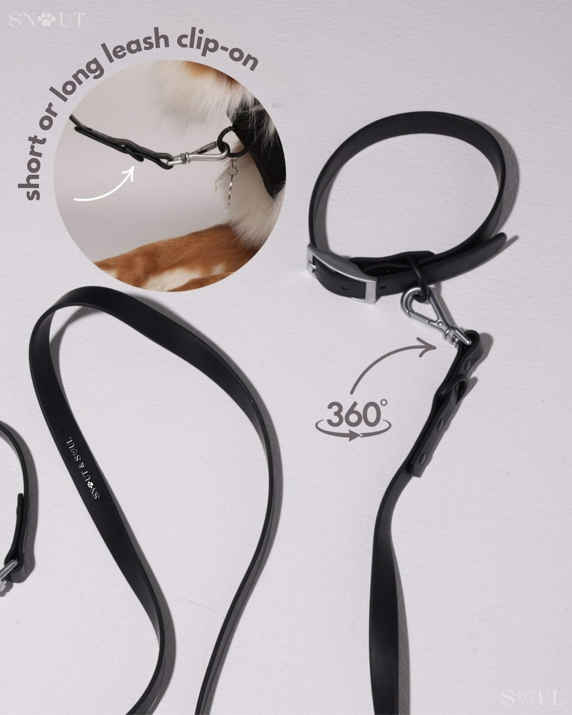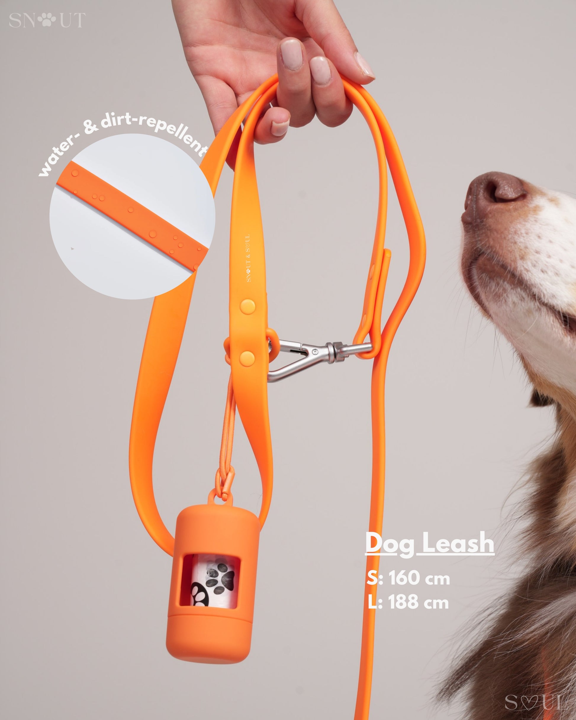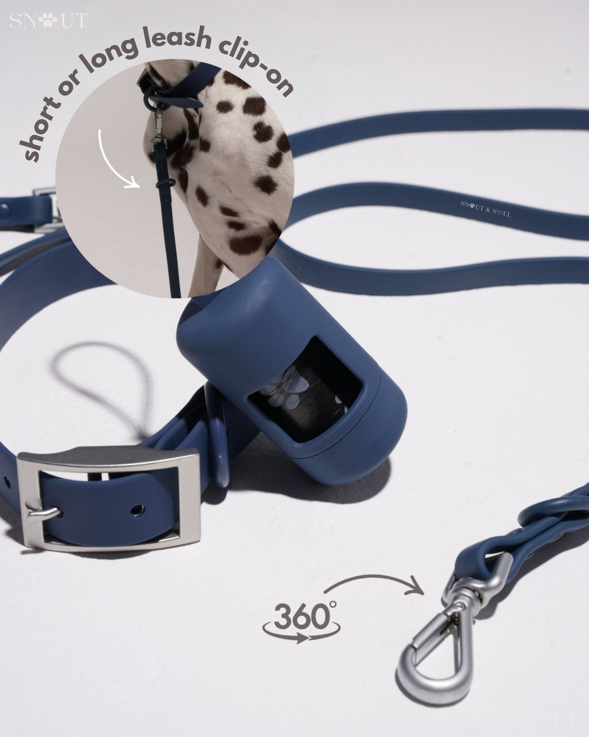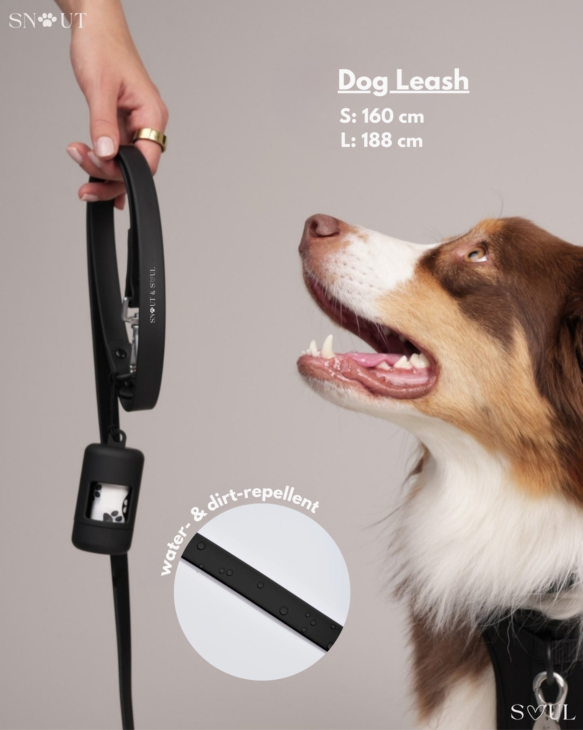 Diese wasser- und schmutzabweisende Hundeleine verfügt über 360° drehbare Clips an beiden Enden und ist in zwei Größen erhältlich: S: 160 cm & L: 188 cm. Dank des zusätzlichen Rings kann die Leine als Standardleine oder als kürzere Trainingsleine verwendet werden. Perfekt für tägliche Spaziergänge und Trainingseinheiten und bleibt auch bei Nässe oder Schlamm leicht zu reinigen.