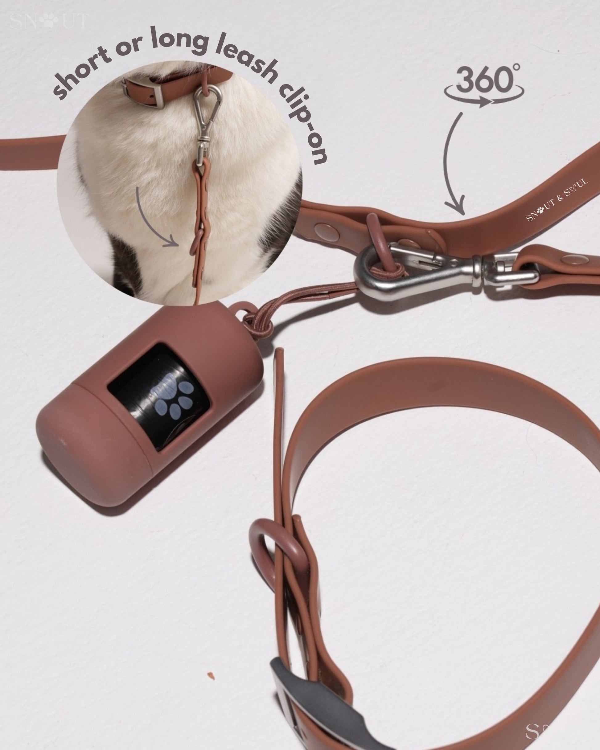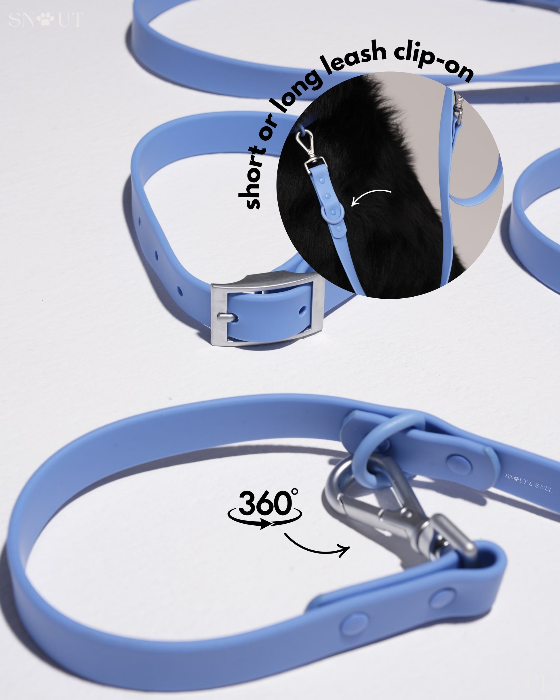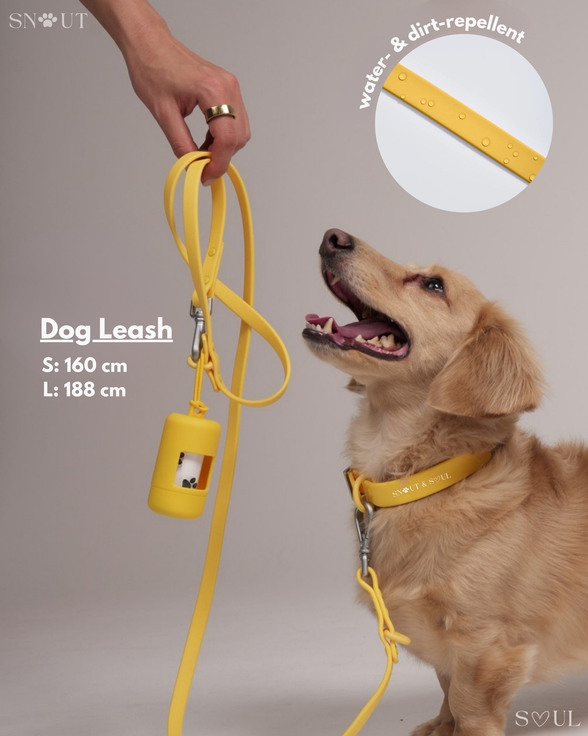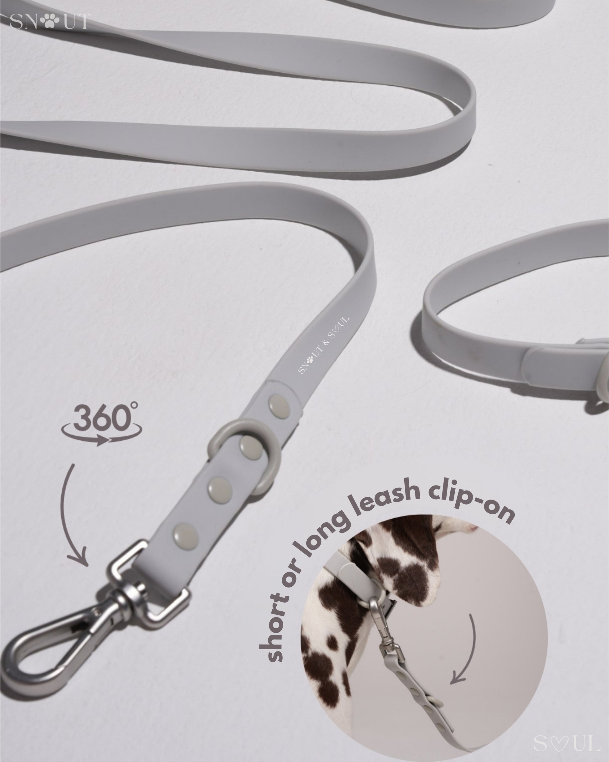 Diese wasser- und schmutzabweisende Hundeleine verfügt über 360° drehbare Clips an beiden Enden und ist in zwei Größen erhältlich: S: 160 cm & L: 188 cm. Dank des zusätzlichen Rings kann die Leine als Standardleine oder als kürzere Trainingsleine verwendet werden. Perfekt für tägliche Spaziergänge und Trainingseinheiten und bleibt auch bei Nässe oder Schlamm leicht zu reinigen.