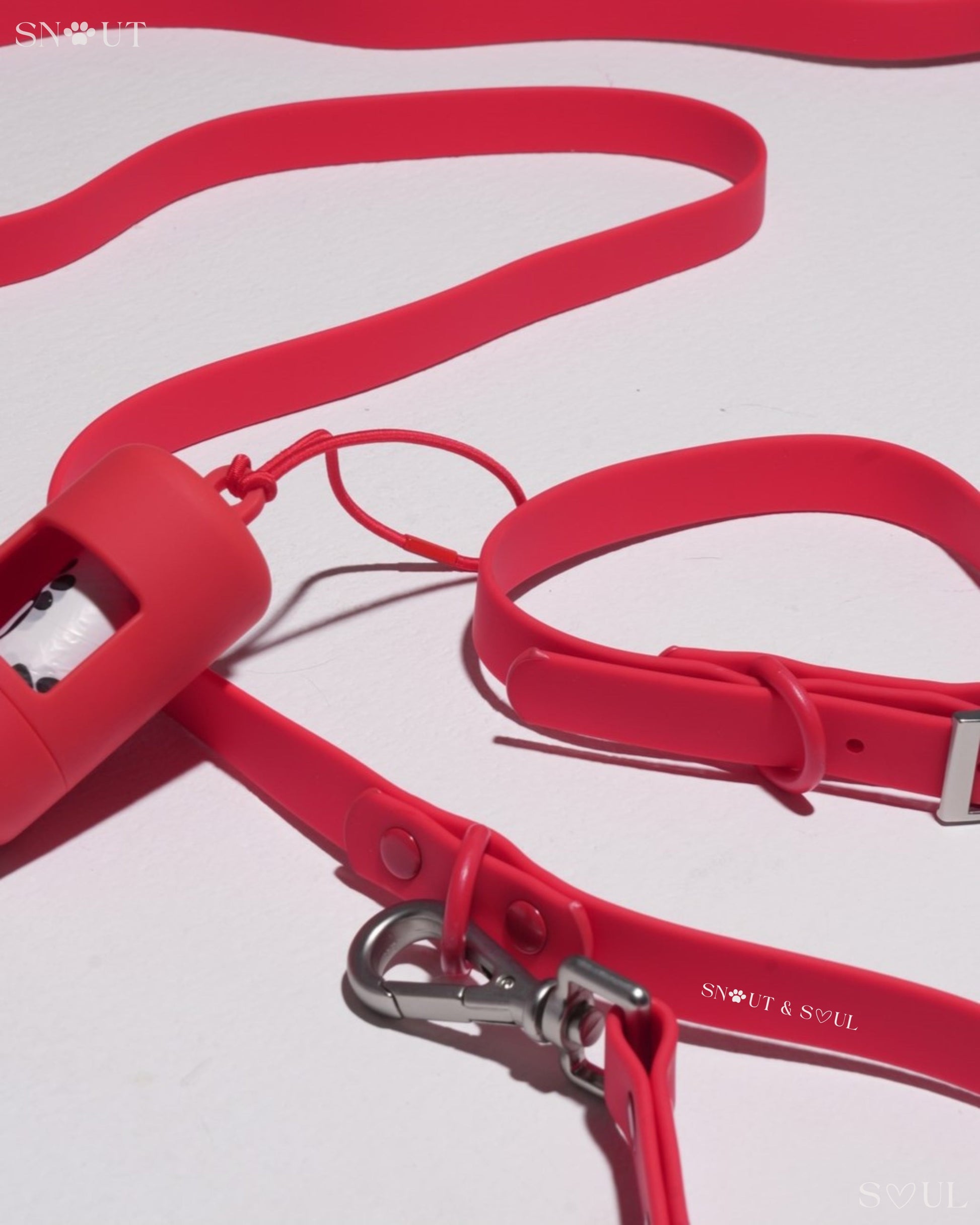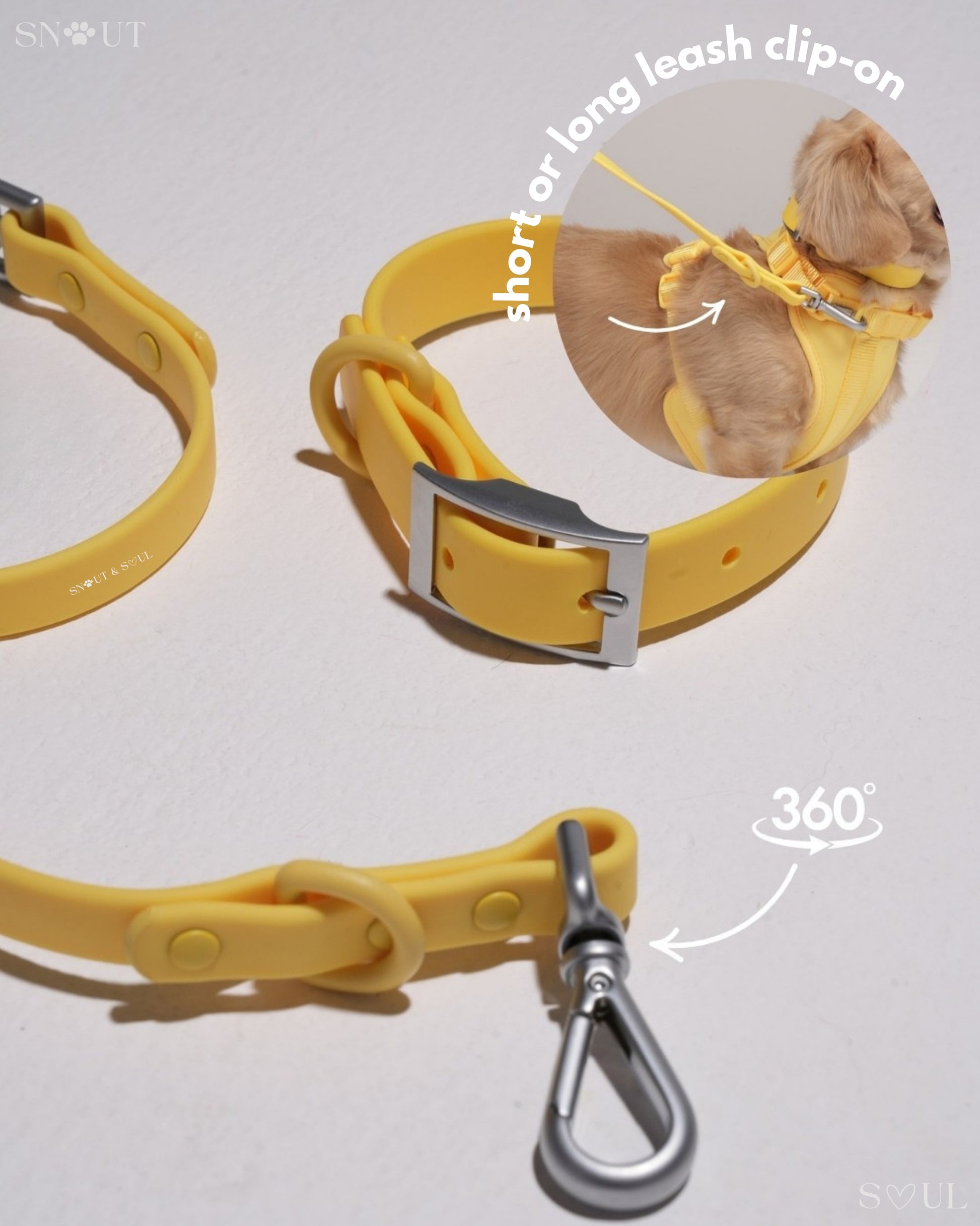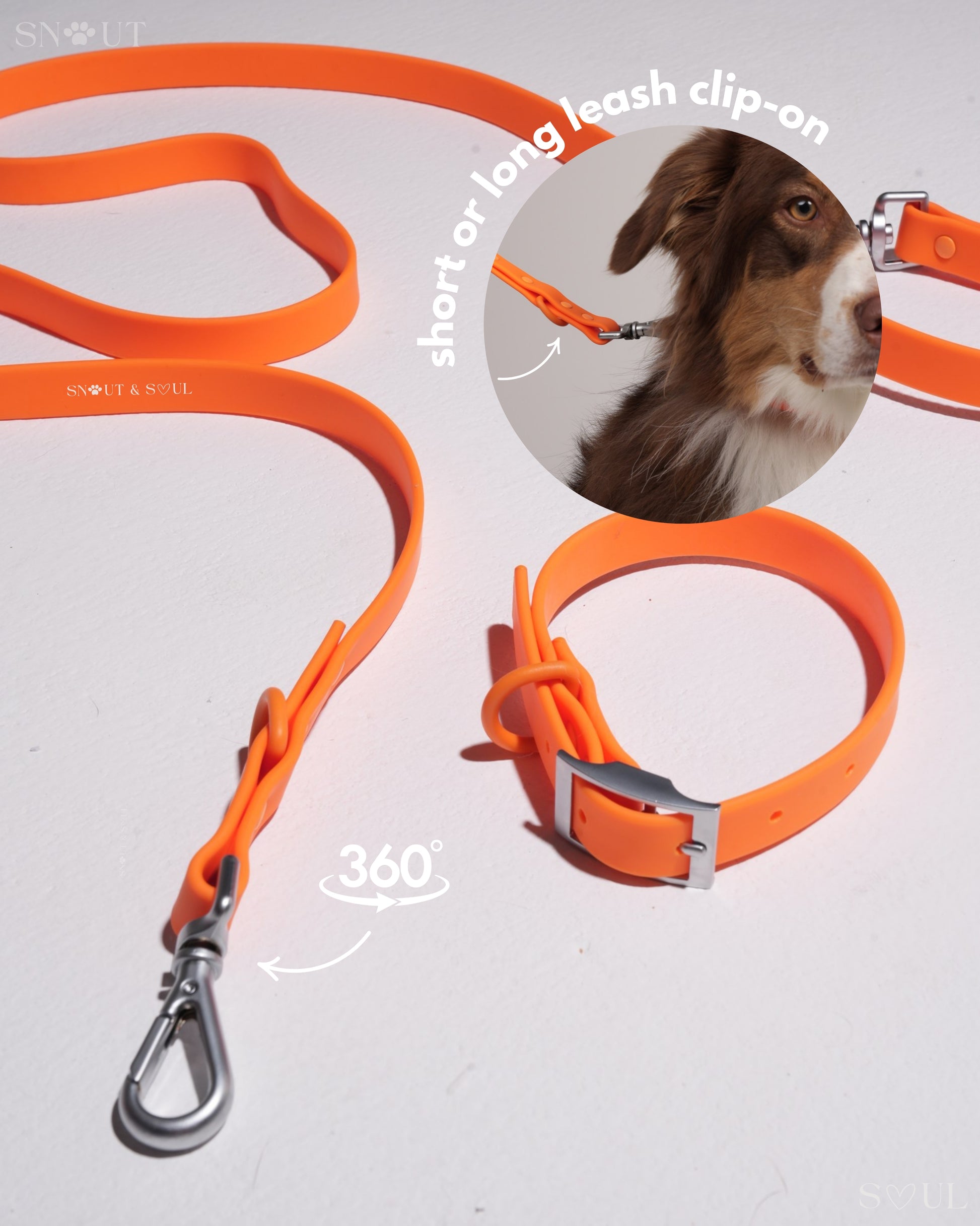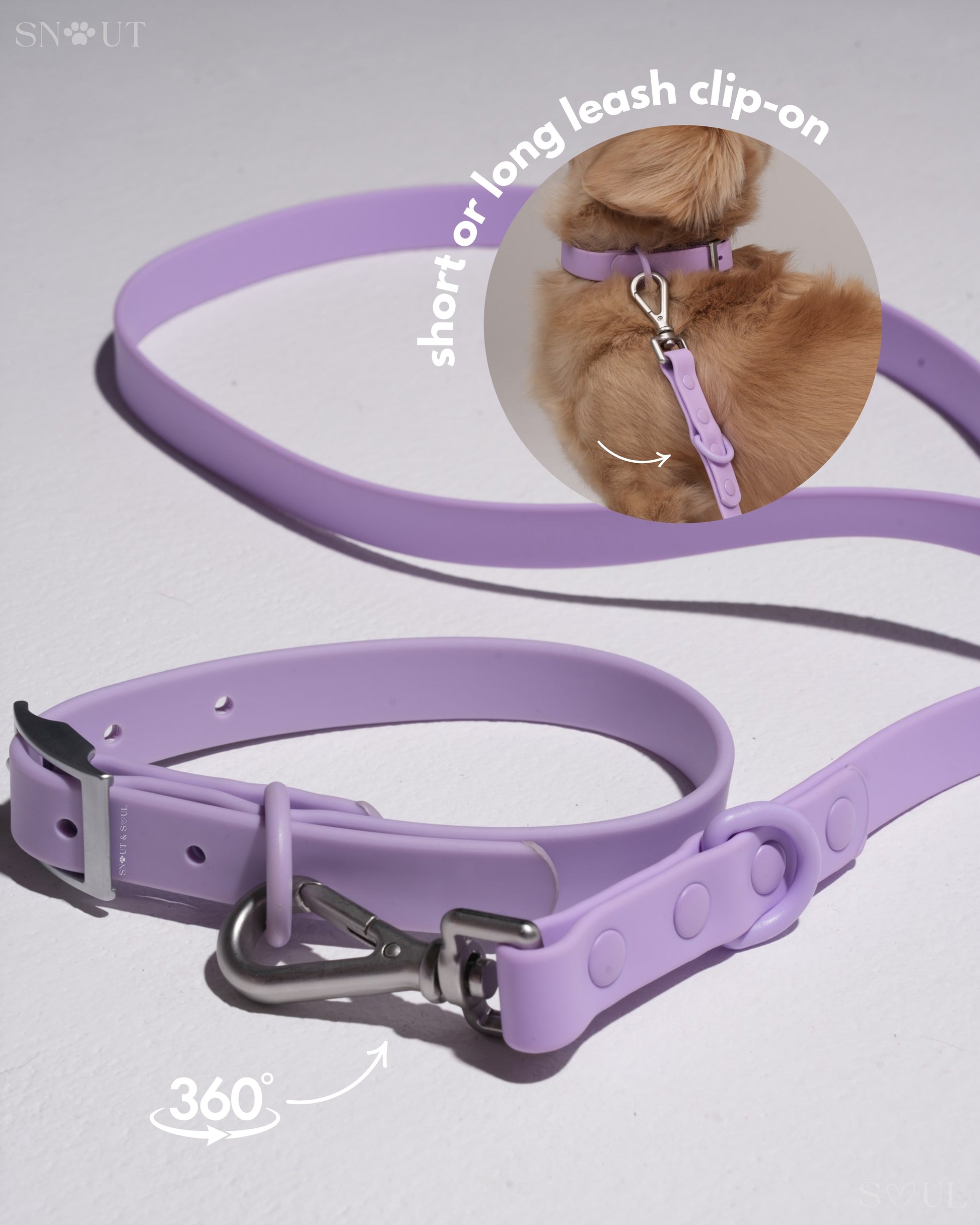 Diese wasser- und schmutzabweisende Hundeleine verfügt über 360° drehbare Clips an beiden Enden und ist in zwei Größen erhältlich: S: 160 cm & L: 188 cm. Dank des zusätzlichen Rings kann die Leine als Standardleine oder als kürzere Trainingsleine verwendet werden. Perfekt für tägliche Spaziergänge und Trainingseinheiten und bleibt auch bei Nässe oder Schlamm leicht zu reinigen.