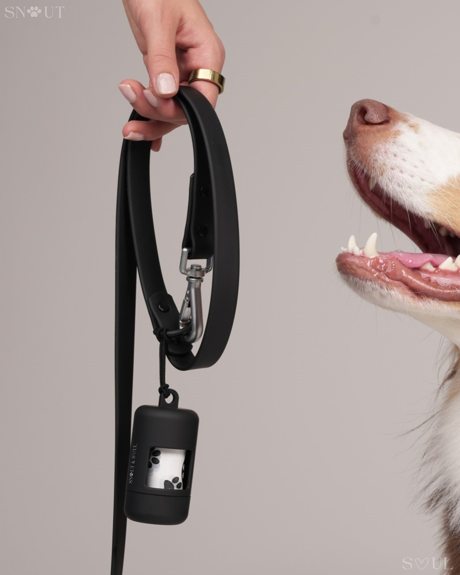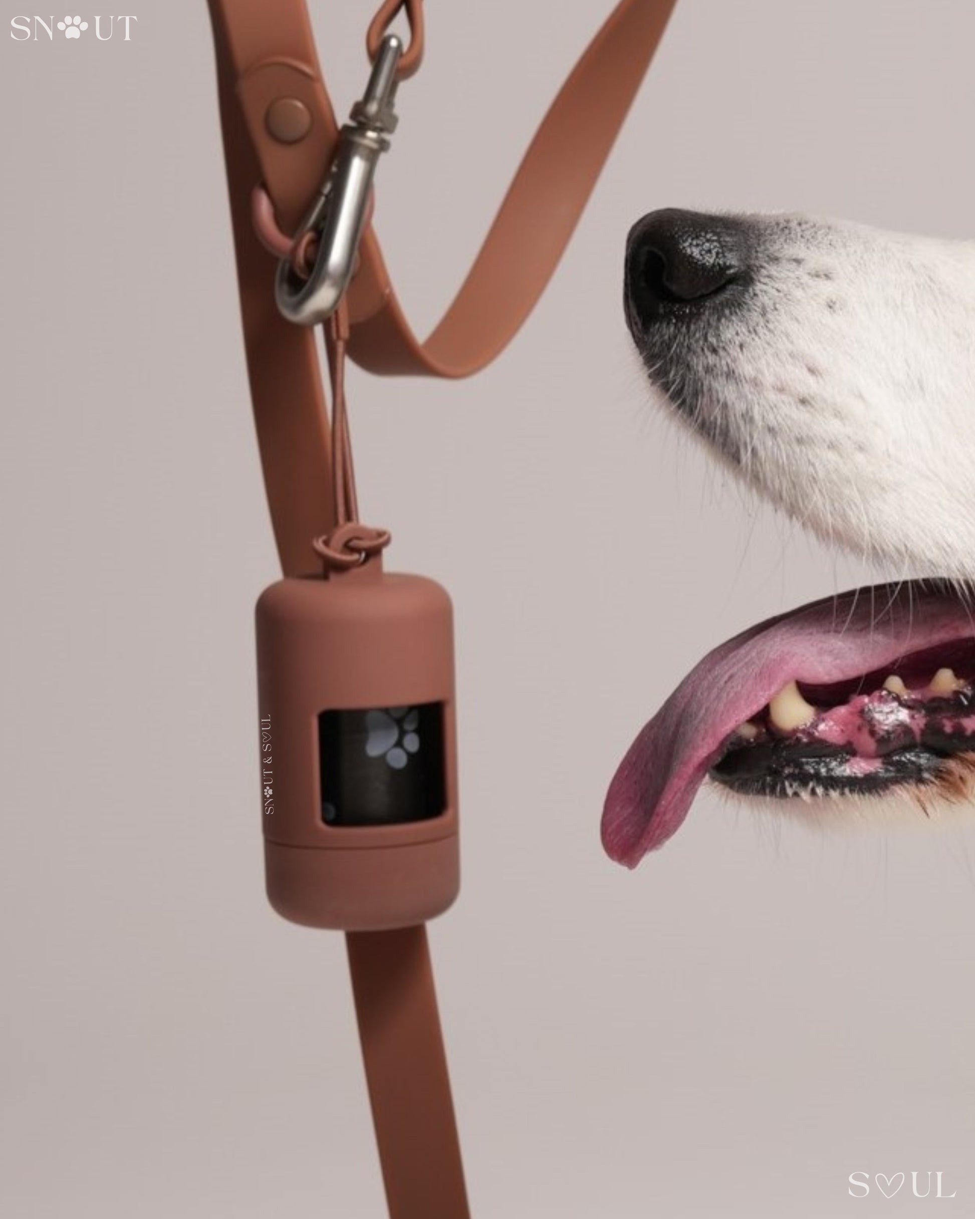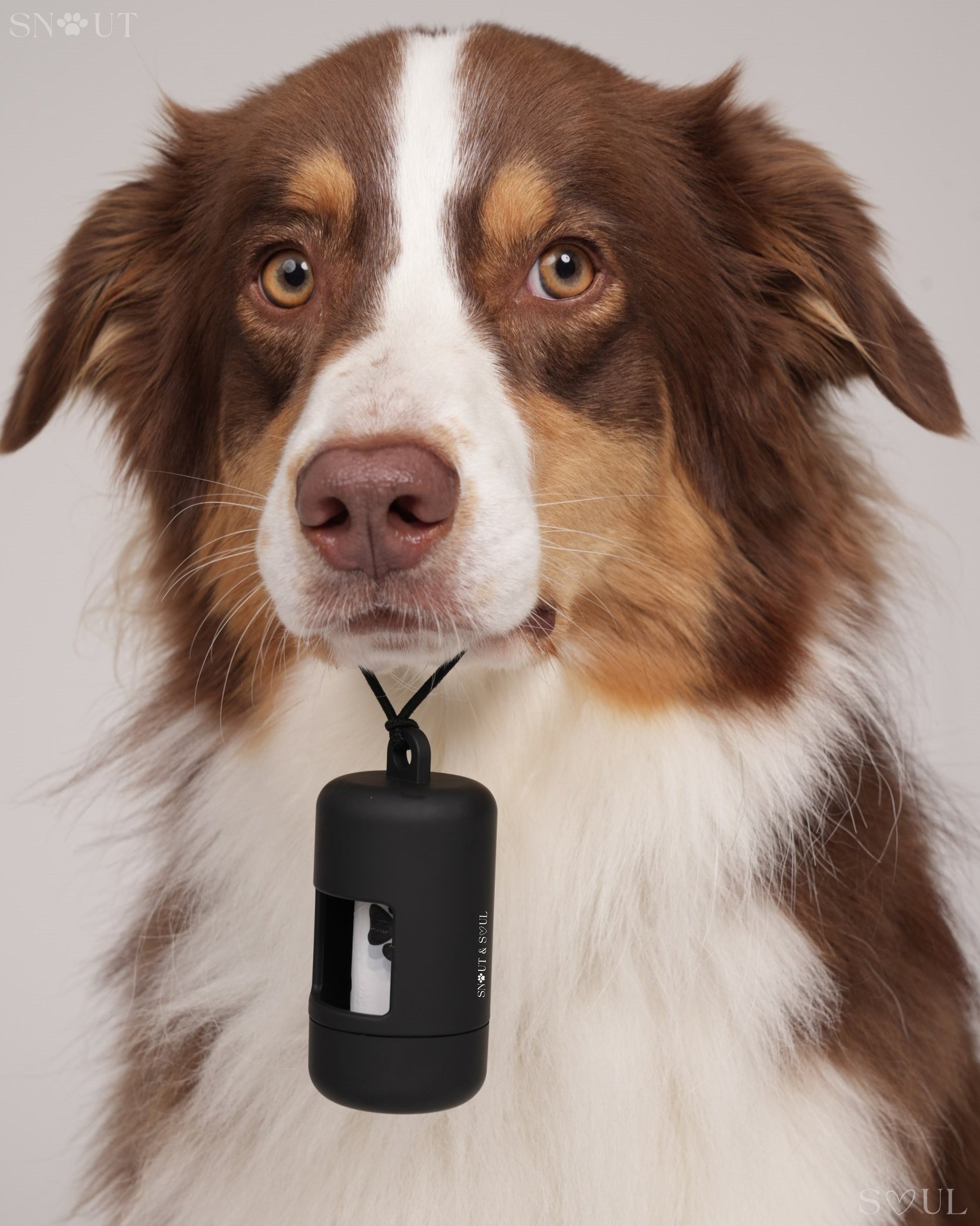 Mit dem praktischen Kotbeutelhalter von Snout & Soul bleiben Sie unterwegs organisiert – und das mit Stil!