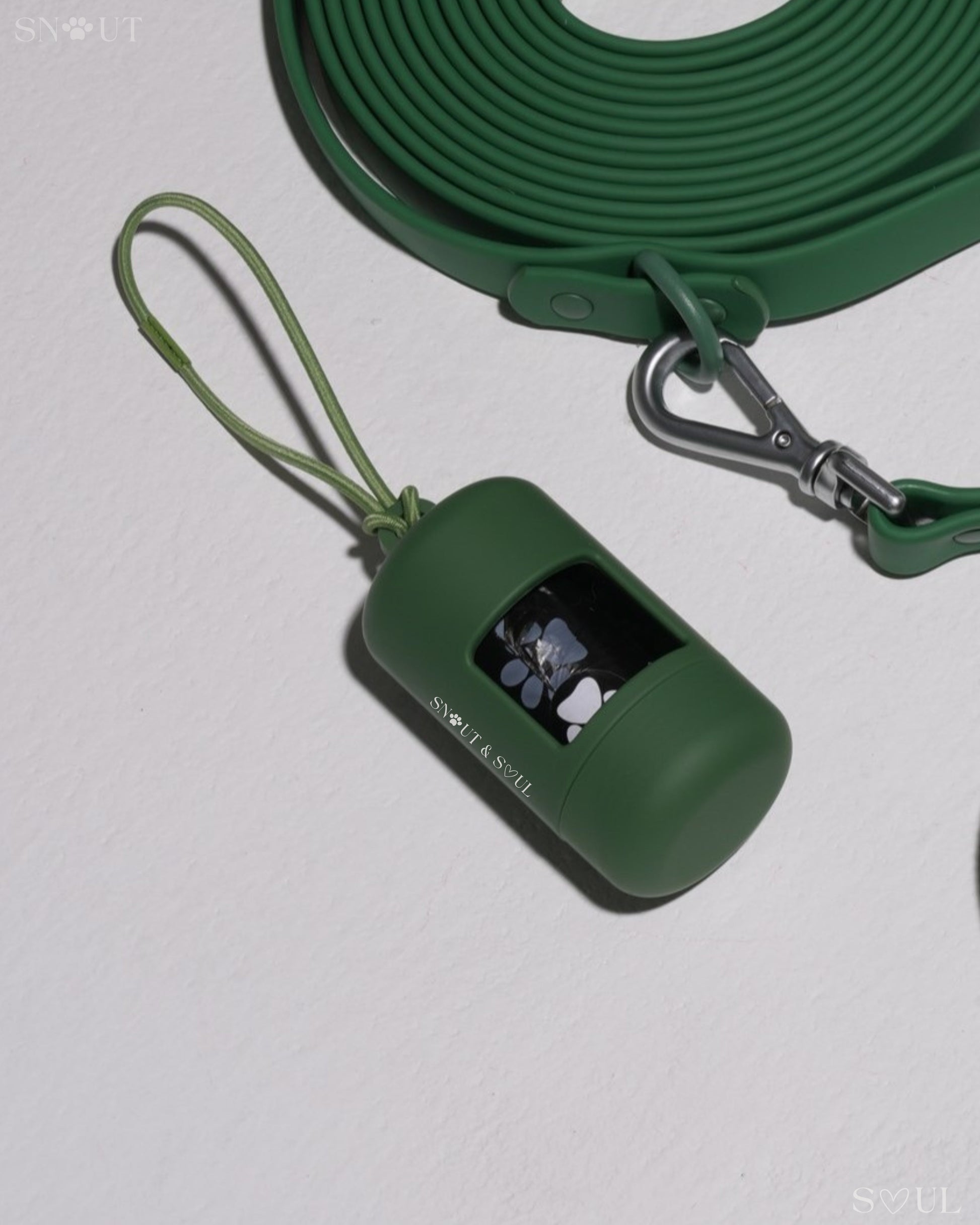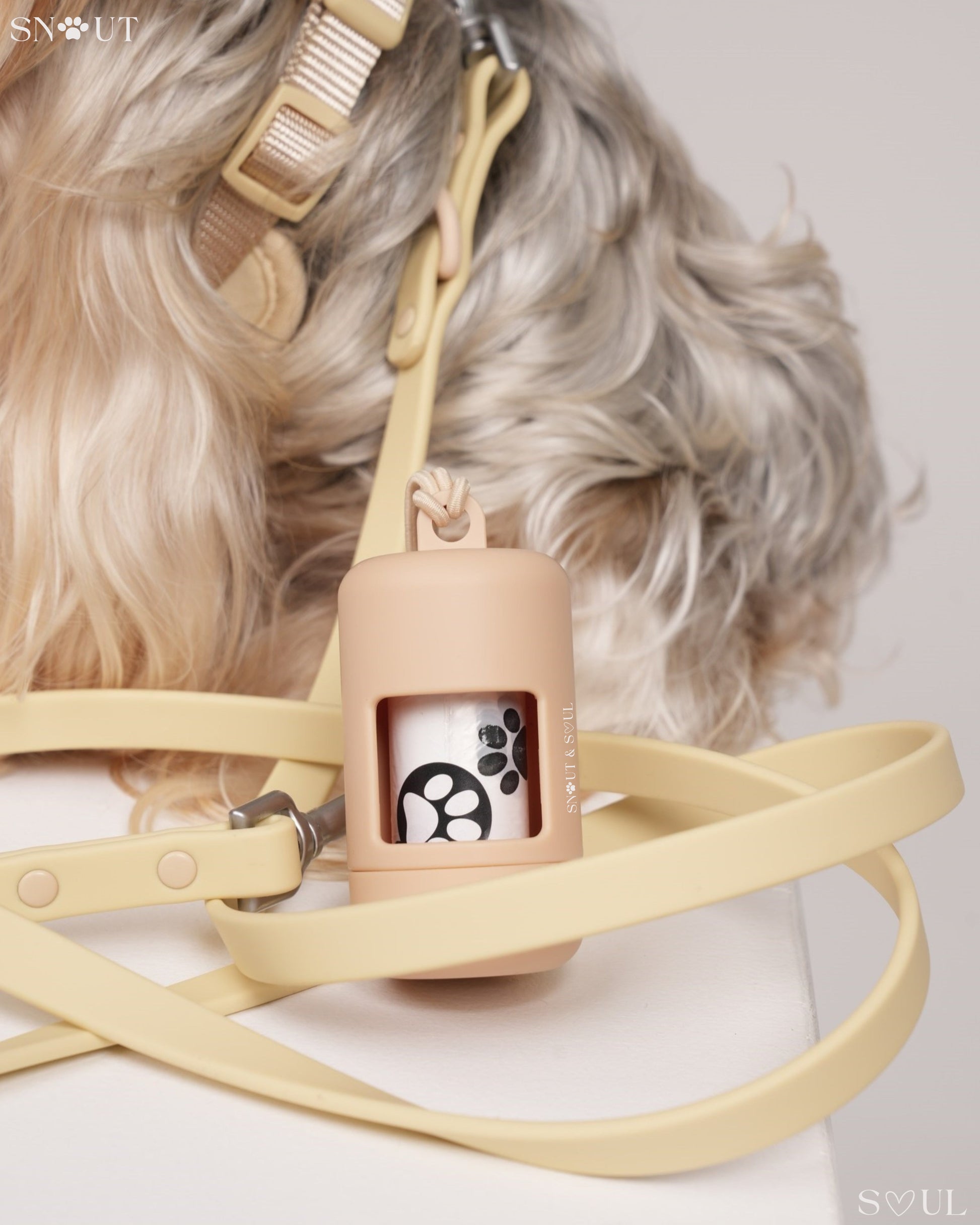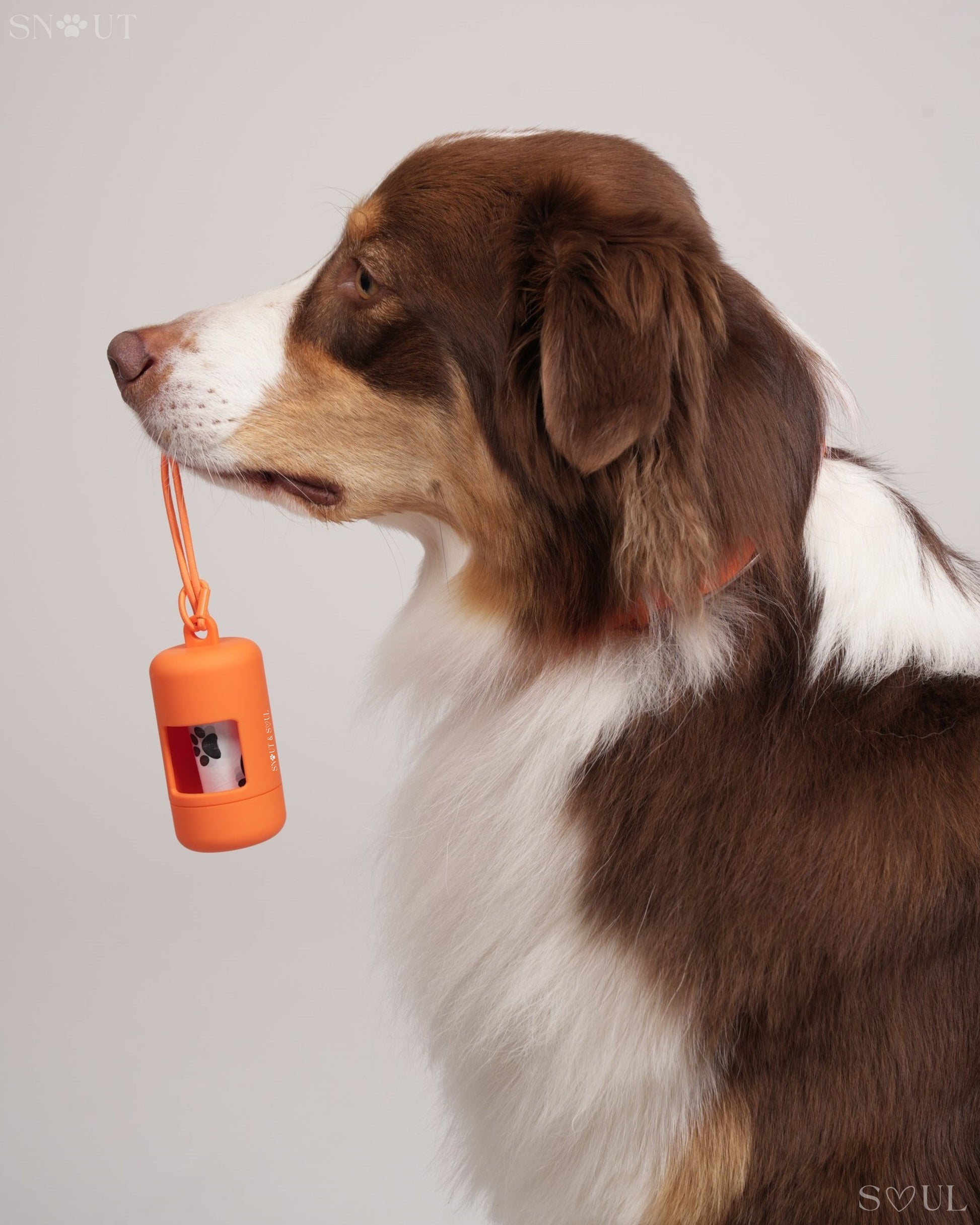 Mit dem praktischen Kotbeutelhalter von Snout & Soul bleiben Sie unterwegs organisiert – und das mit Stil!