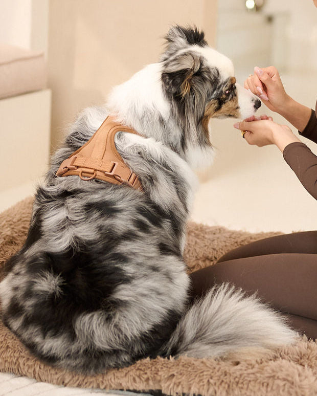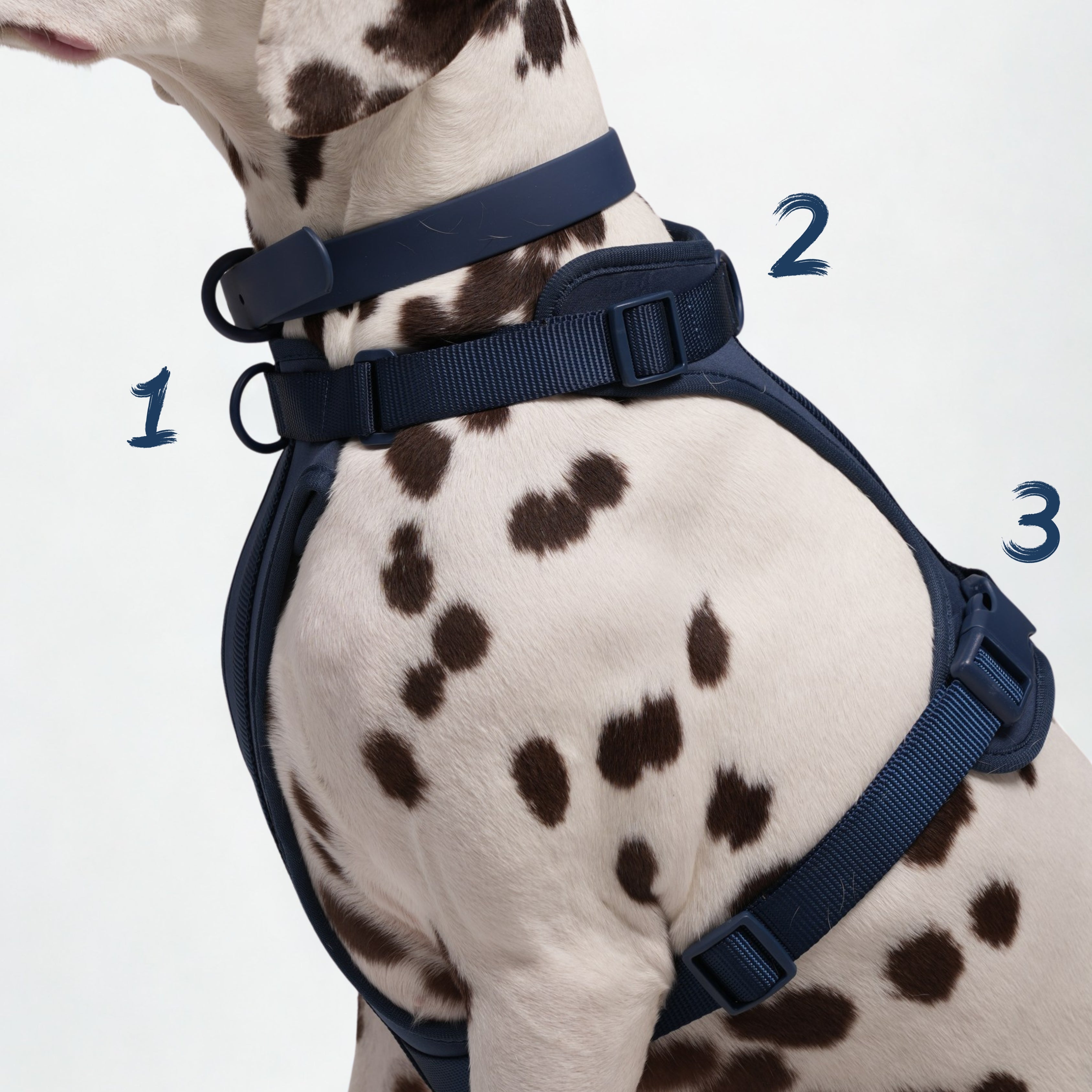 Das Geschirr lässt sich mit vier Nylonbändern leicht verstellen und passt sich so mühelos der individuellen Körperform Ihres Hundes an. Es ermöglicht freie Atmung und spielerische Bewegung und folgt den natürlichen Bewegungen Ihres Hundes. Die zwei robusten ABS-Schnellverschlüsse ermöglichen ein müheloses An- und Ablegen – Ihr Hund ist in Sekundenschnelle einsatzbereit.