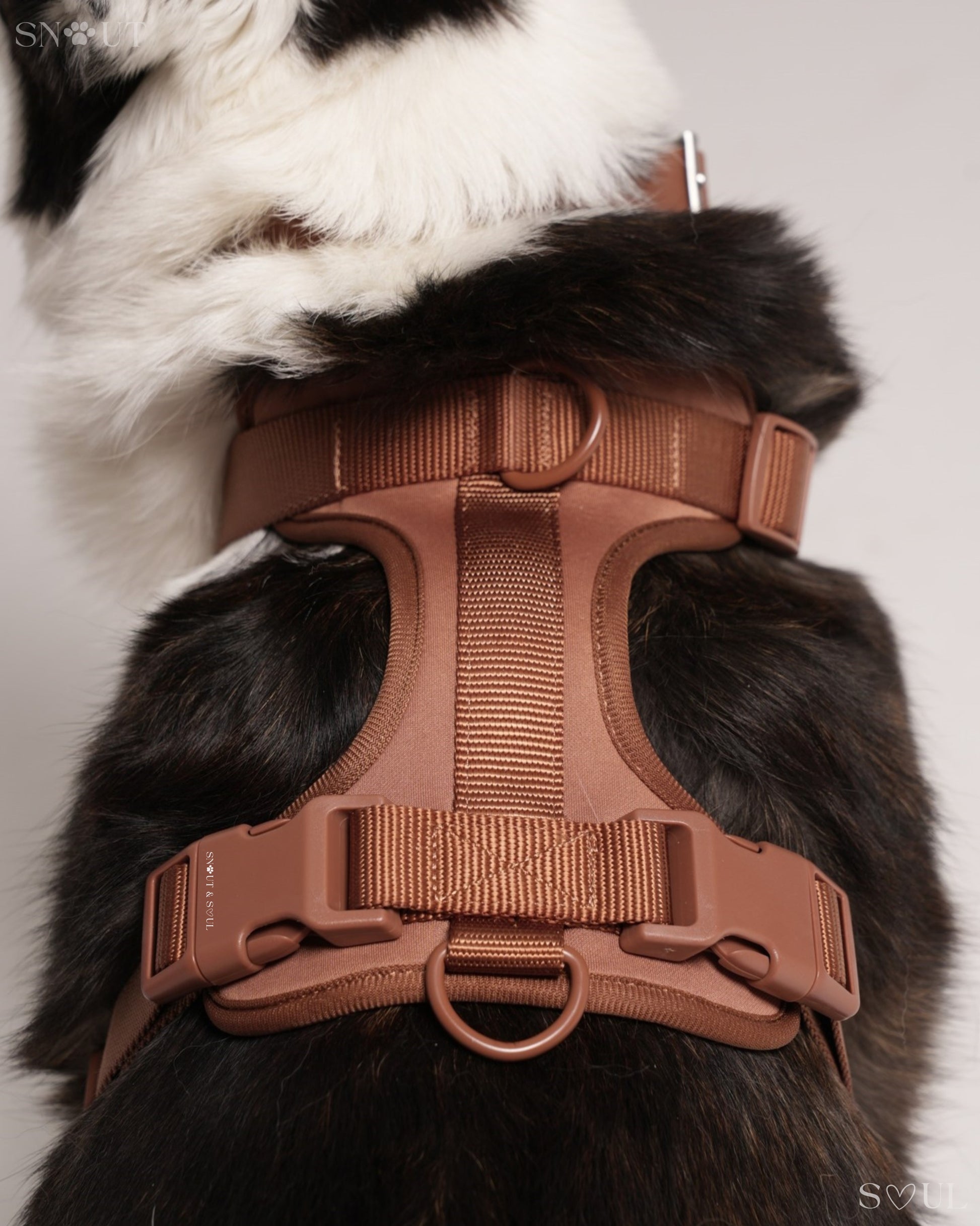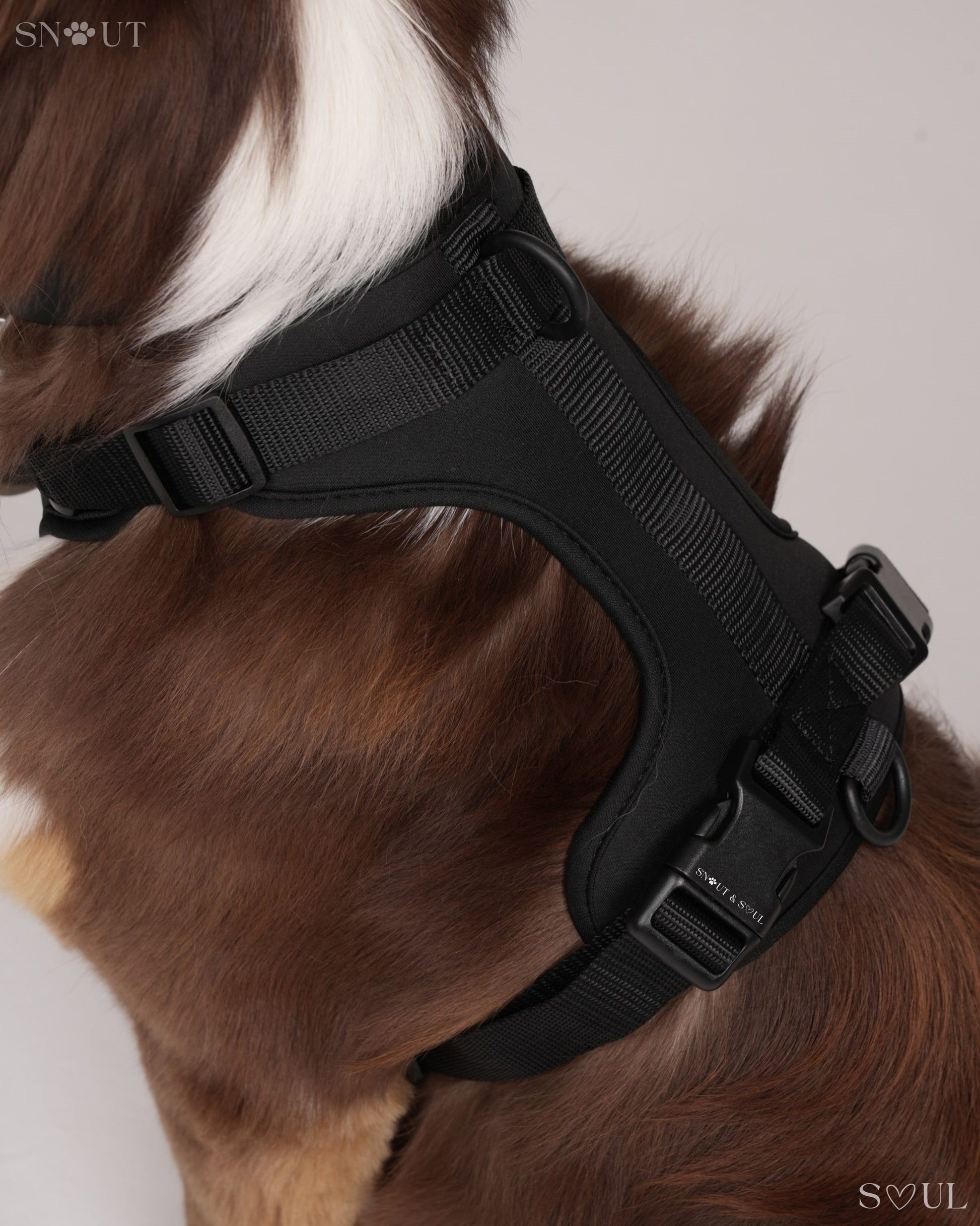 Das Snout & Soul Geschirr ist die perfekte Wahl für Hunde jeder Größe und wurde mit Blick auf höchsten Komfort und Ergonomie entwickelt. Sein raffiniertes Design und die langlebigen Materialien machen es nicht nur ultraleicht, sondern auch unglaublich robust – ein Muss für tägliche Spaziergänge oder Outdoor-Abenteuer mit Ihrem Hund.